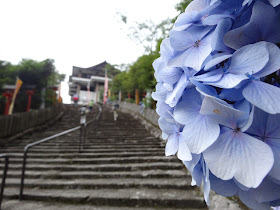 この日は梅雨真っ盛り、雨こそ降っていませんでしたがジメジメ暑かったのですが、滝の近くだからか、鬱蒼とした森を進む参道はひんやり心地良かったです。